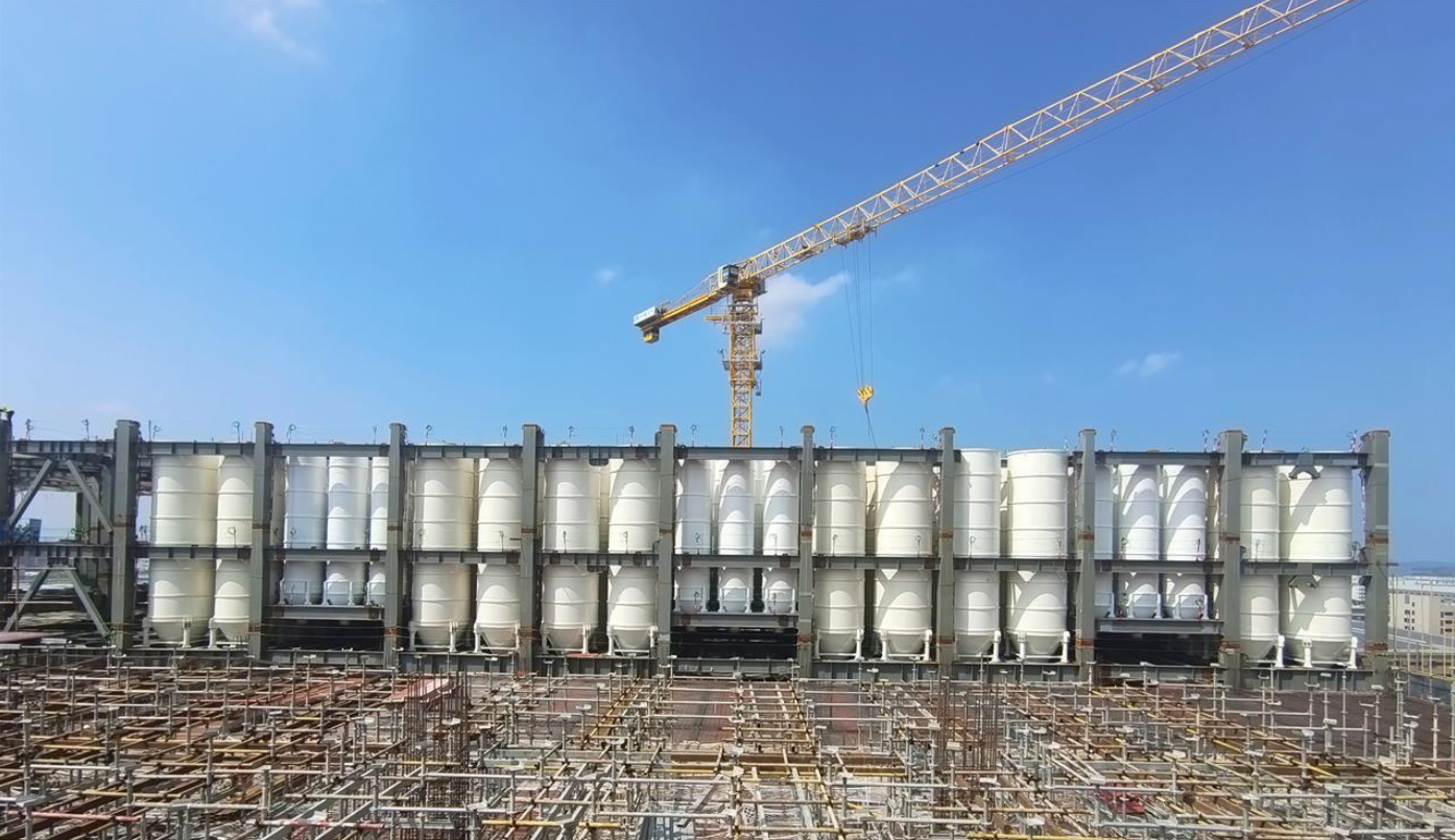 據本期項目承建方中建科工項目負責人介紹,該項目鋼結構構件采用工廠智能化生產,依托高精度設備與智能感知技術,從源頭規避人為操作導致的質量偏差。他直言,美巢武漢智能工廠的砂漿車間內部是來自國際知名品牌的成套進口生產線,先期需安裝180個原料儲罐——單個最重14噸、最大直徑3.4米、最長19米,施工過程中面臨著諸多難題,不過經過多輪的專家勘察與技術攻關,成功將其攻克,保證了項目的如期完工。