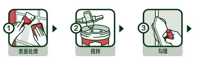 | 填縫時(shí)間: | 待瓷磚或石材粘貼24小時(shí)后進(jìn)行。 |